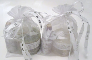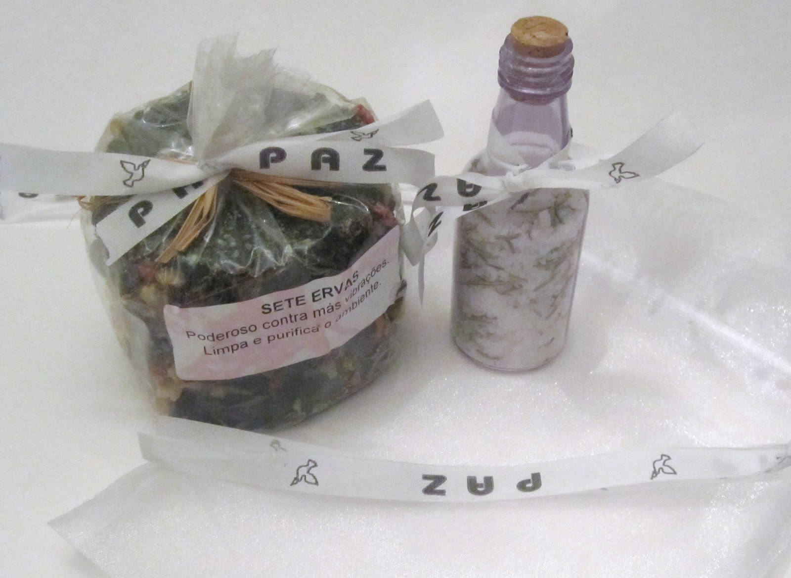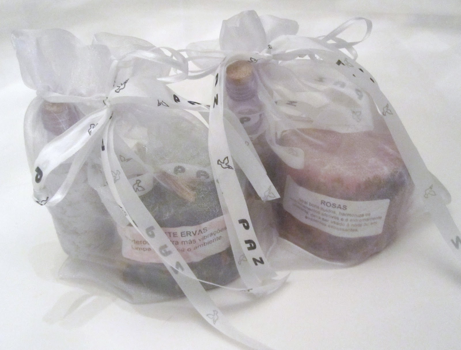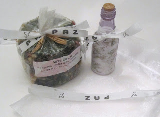 Saquinhos de Ano Novo com velas aromáticas de ervas e garrafinha de sal grosso com alecrim para entrar em 2012 com o pé direito e boas energias.